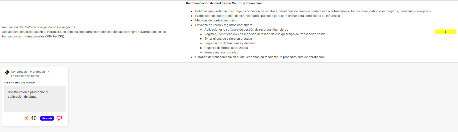 También tiene la capacidad de buscar las Fuentes de Obligación (delitos, normas, reglamentos...) vinculadas a los Riesgos y recomendar medidas y controles basados en un análisis de las bases de datos.